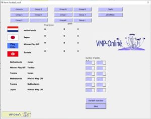 Al vele jaren verzorgt VMP bij een WK of EK voetbal toernooi een poule programma in windows Excel. De laatste jaren is er ook een voetbal competitie poule voor de eredivisie te downloaden. Dit alles tegen een kleine vergoeding.